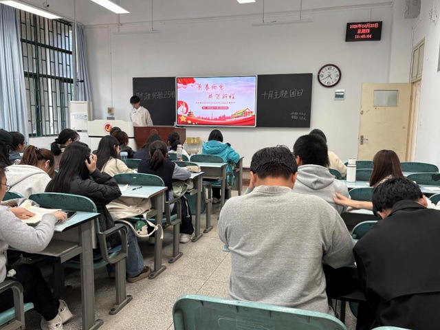 为深入学习贯彻党的二十大和二十届三中全会精神,认真学习贯彻习近平总书记考察湖北重要讲话精神,持续深化“悦学习•跃青春”思政工作品牌,激活“三会两制一课”,赋能基层团支部建设。我院于10月23日在一号教学楼开展了本次主题团日活动。各团支部围绕着“青春向党,共贺新程”“石榴结籽七十载,中华同心向未来”“思想铸魂 青春强国志”“暑期归来话实践”开展青年思想教育活动,通过播放相关视频激发同学们的积极互动。