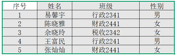 接校团委通知,我院本学年团员发展名额予以增补,根据《中国共产主义青年团发展团员工作细则》,经本人申请、班级推选、理论考试、团委审批,拟接收易馨宇等5位同学为新发展团员。现将名单公示如下: