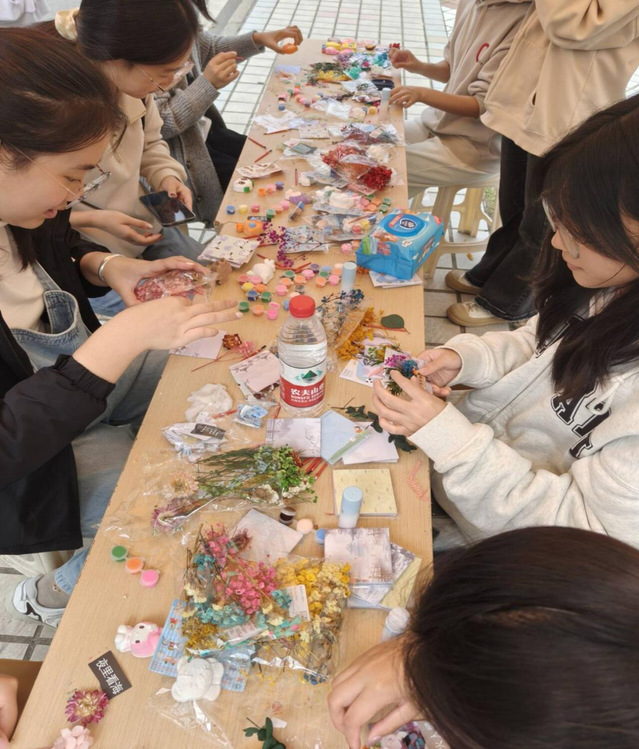 此次活动以“轻创作、暖互动”为目的,通过低门槛手工形式,让同学们在学业间隙获得放松,借助文字与花艺的结合,传递情绪关怀。现场的同学们也纷纷表示,这次的活动既丰富了课余生活,也让自己在创作中找到了治愈感。从色彩斑斓的干花到独一无二的拼贴诗,从素白石膏到鲜活作品,这场秋日摆点活动,以细腻的创意形式,为校园生活填上一份温暖底色。