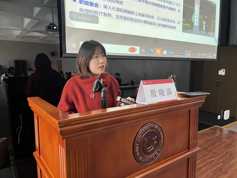 12月12日下午,由湖北经济学院财政与公共管理学院、医疗保险改革协同创新中心与MPA教育中心联合主办的“明辨公管实务论坛”在教5-511成功举行。本次讲座特邀武汉大学人民医院医保管理办公室副主任殷晓露担任主讲,主题为《医保政策落地“最后一公里”——医院医保办的执行与管理》。本次论坛由社保系主任贺睿博主持,副院长任立、社保系骨干教师、25级公共管理硕士研究生与23、24级医疗保险专业本科生参加。