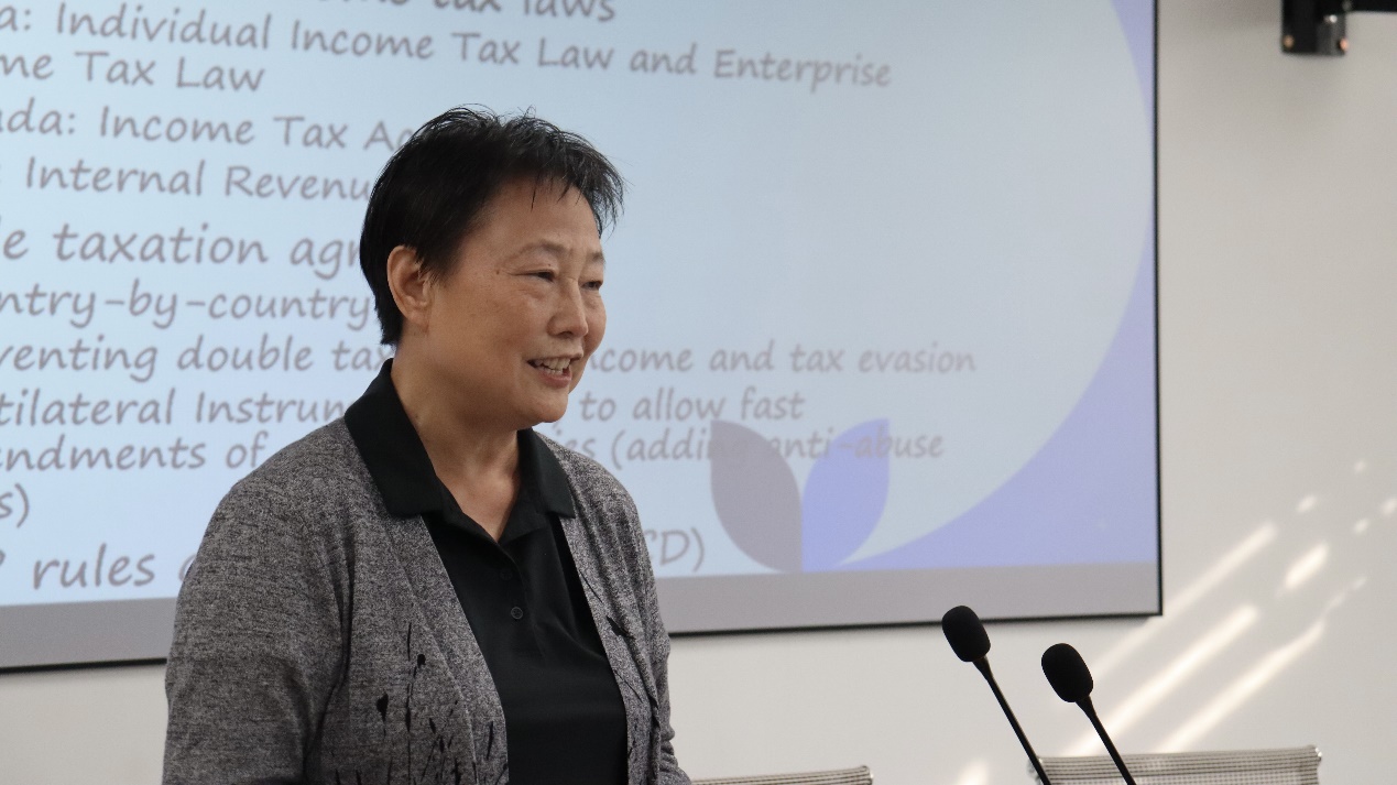 12月18日下午,由我院主办的“明辨财税大讲堂”系列学术活动在明辨楼420会议室举行。加拿大约克大学奥索格霍尔法学院Jinyan Li教授应邀作题为《International Tax Law: Wars, Crisis and Global Power Shifts》的学术讲座。讲座由院长魏涛教授主持,学院全体教师、2025级税务专硕研究生和部分本科生踊跃参加。