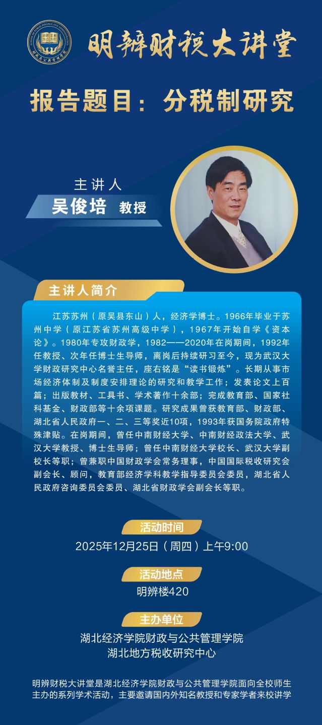 明辨财税大讲堂第16期丨吴俊培:分税制研究