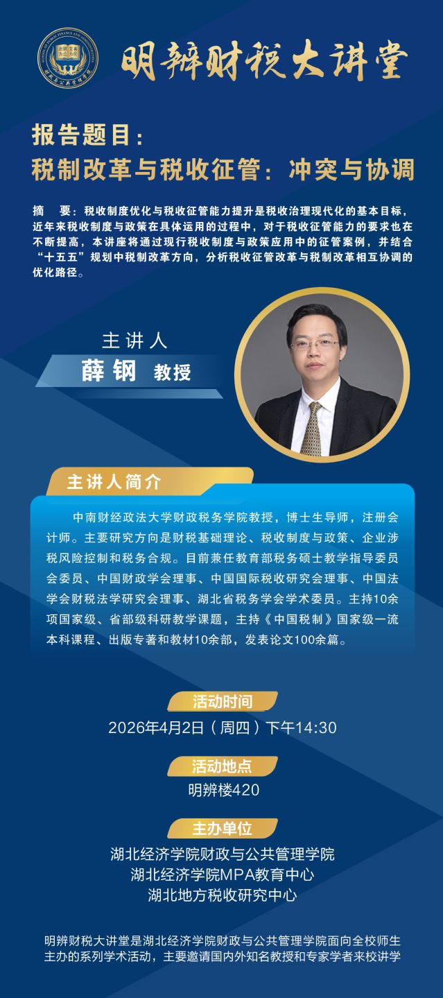 明辨财税大讲堂第17期丨薛钢:税制改革与税收征管:冲突与协调